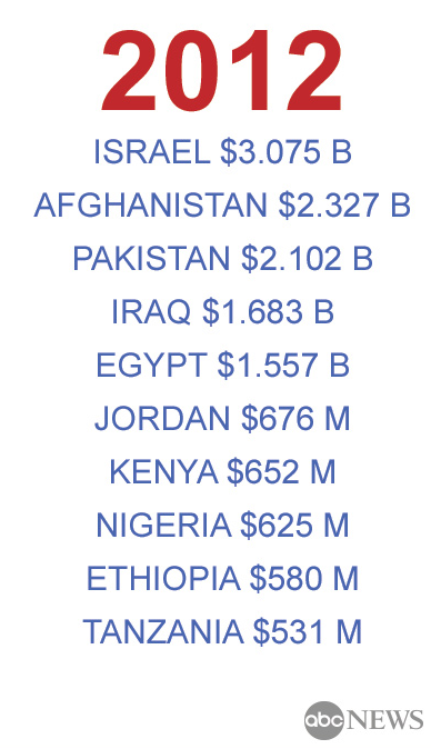 It’s one thing to be so blinded by multicultural nonsense (failing to appreciate that it is the Muslim world — not America — that desperately needs to embrace “diversity”) that we can’t clearly identify evil, it’s another thing entirely to subsidize oppression on a grand scale. Read this ABC News chart of American aid recipients and weep: