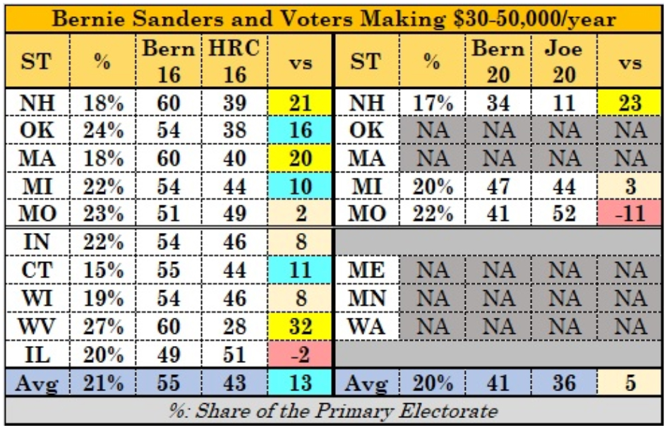 Focusing on the economic bracket that was strongest for Sanders in 2016, voters making between $30,000 and $50,000 a year: