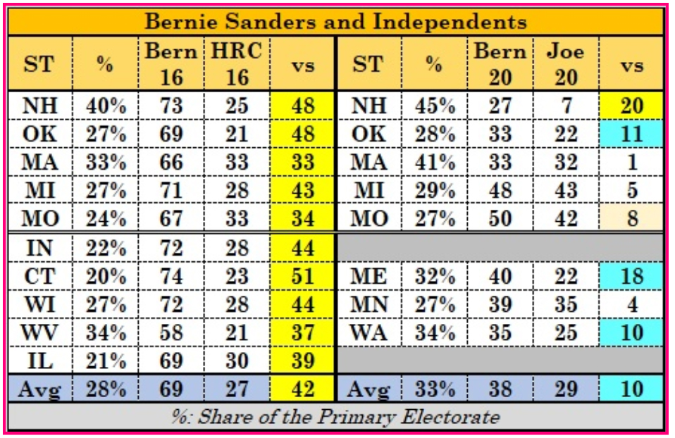 Sanders utterly dominated independents in 2016. He still runs ahead with them, but not by anything like the same margins.